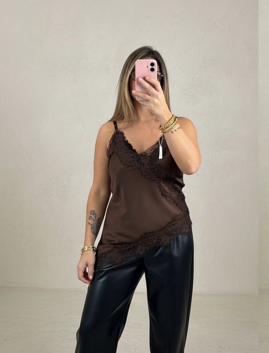 TOP GUIPURE CHOCOLAT