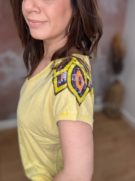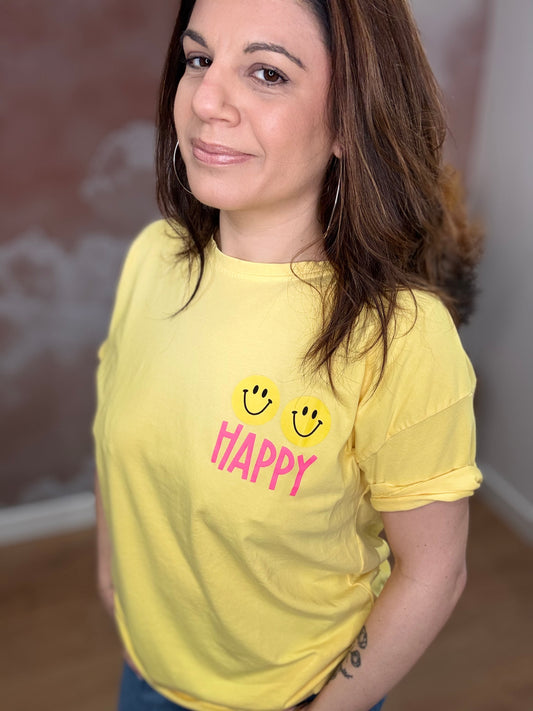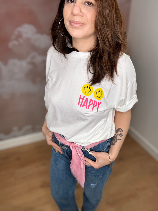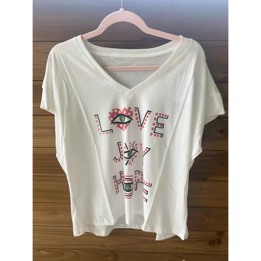 T-SHIRT COL V MOTIF LOVE JOY HOPE