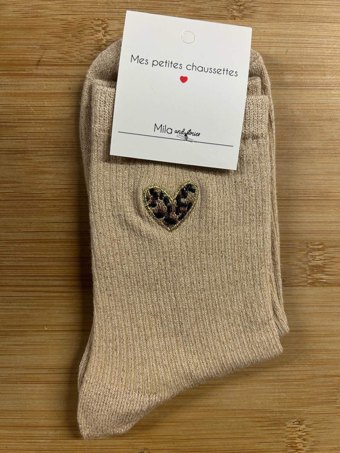 CHAUSSETTES CŒUR LÉOPARD BEIGE