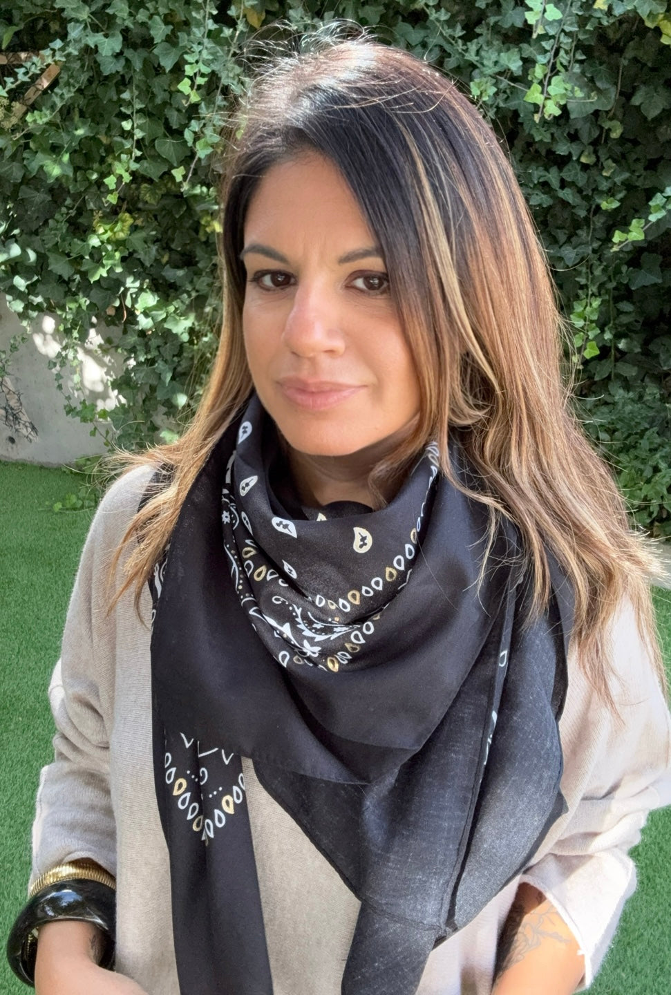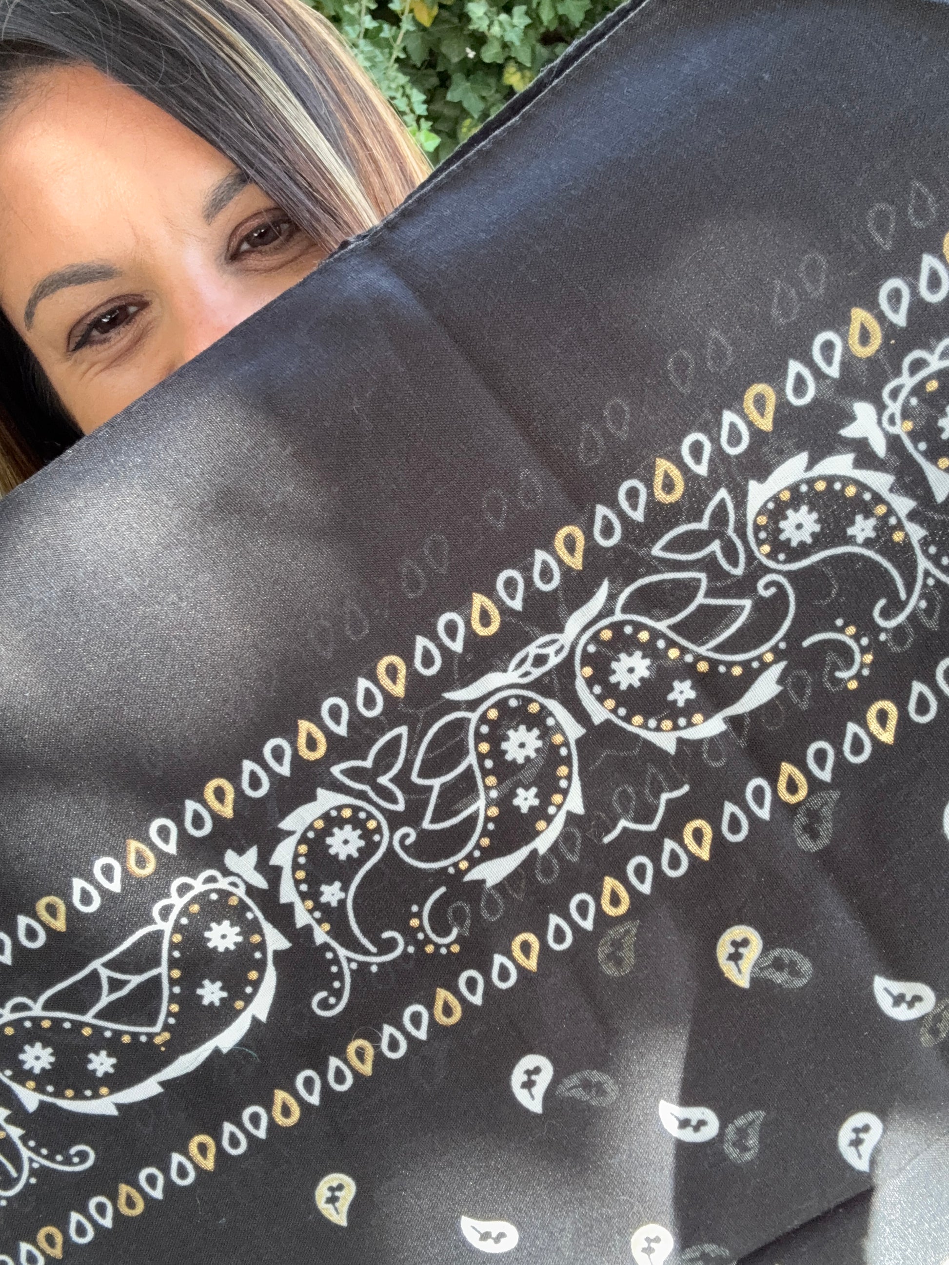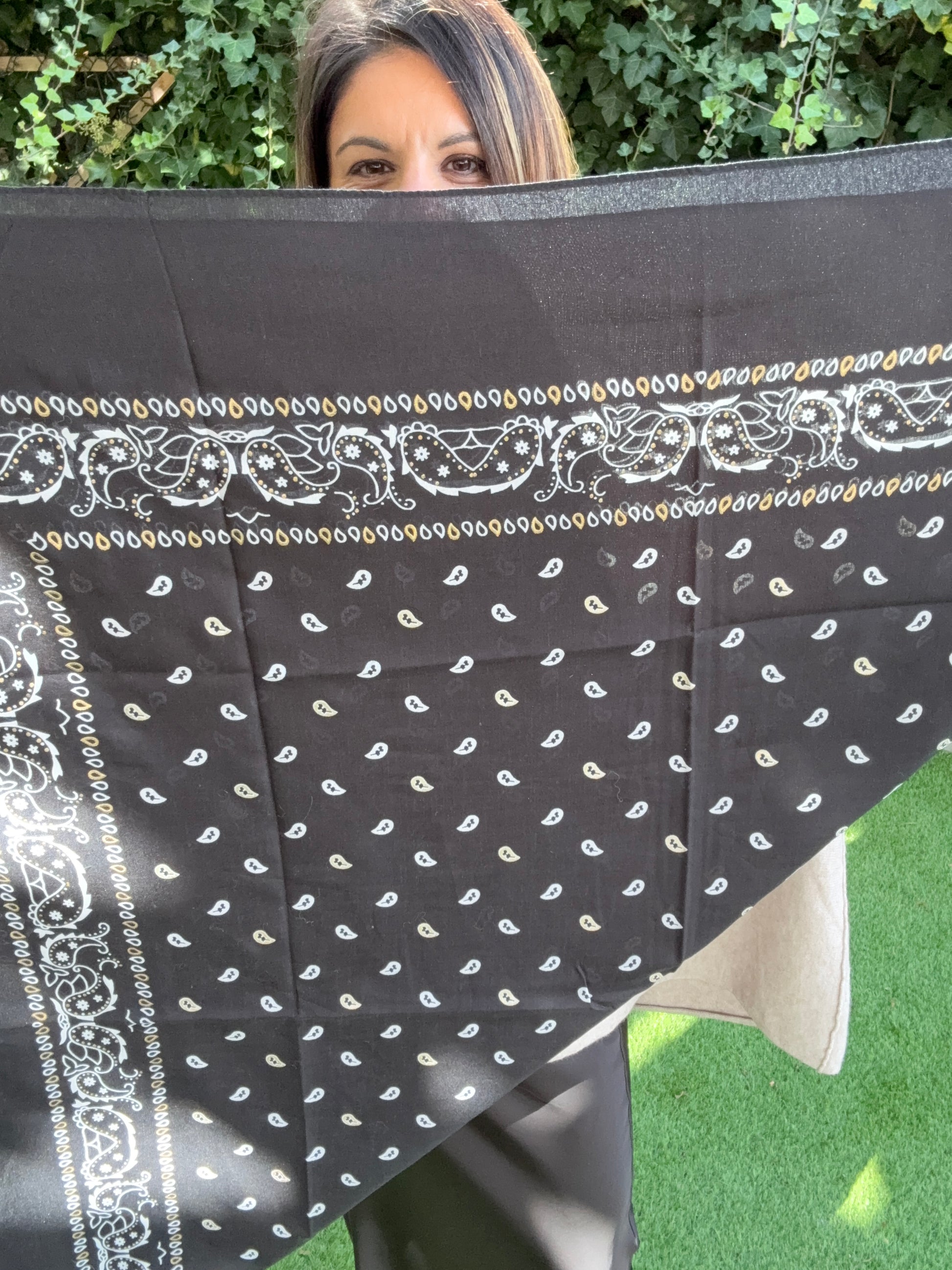 Apportez la touche finale à vos looks avec ce foulard noir à grand motif bandana, ultra tendance et plein de caractère. Son design graphique effet bandana transforme instantanément une tenue simple en look stylé et branché, digne des street styles des magazines mode.