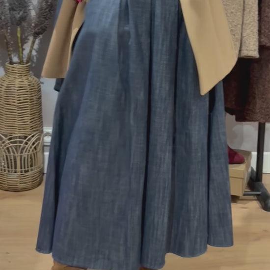 Réinventez votre allure avec cette jupe godet en jean signée Johanna Paris, un indispensable pour un look ultra stylé et contemporain. Sa coupe évasée apporte du mouvement à chacune de vos pas et sublime toutes les silhouettes, tandis que le denim coton premium garantit confort et tenue parfaite toute la journée.