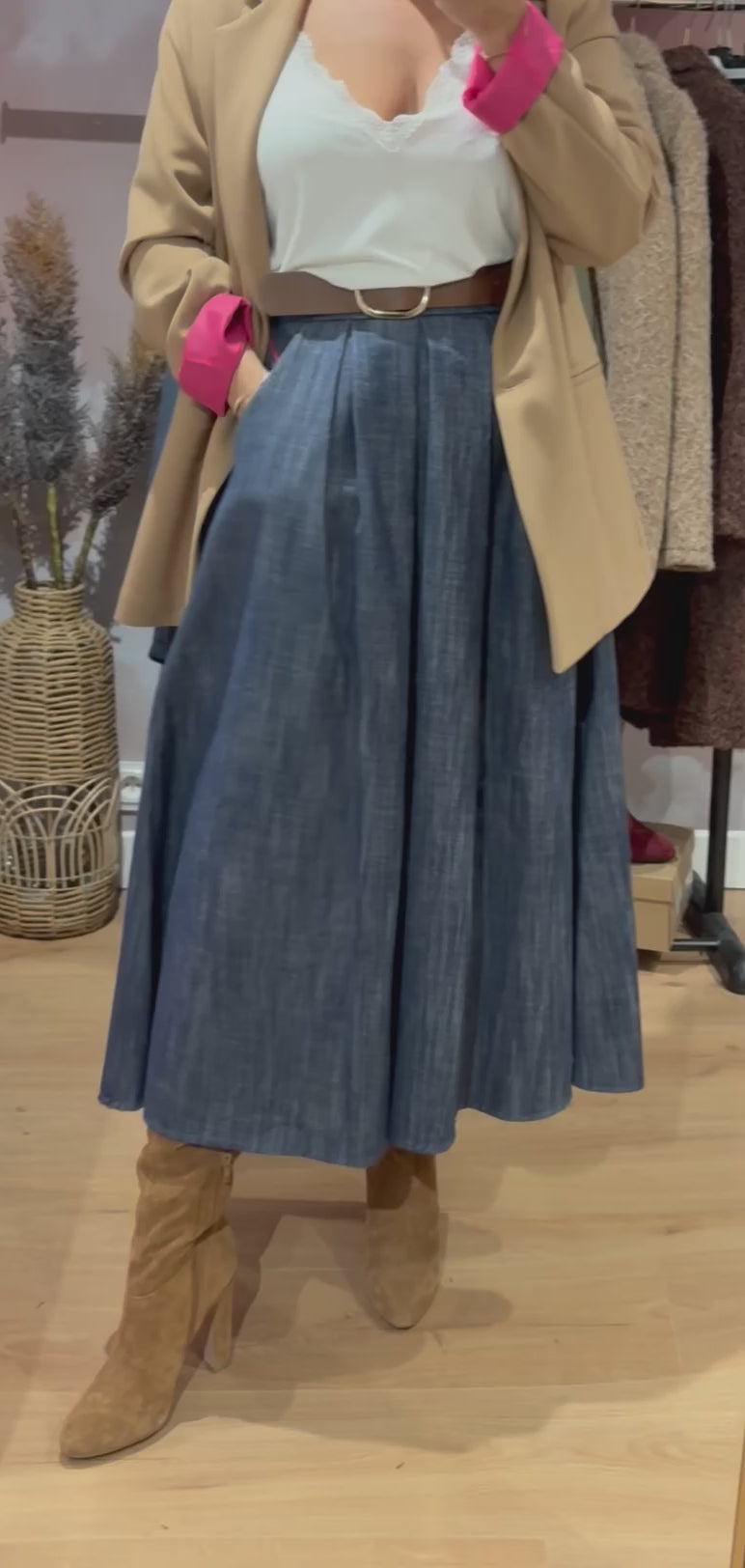 La touche finale chic ? Sa ceinture amovible et ajustable en similicuir camel, qui structure la taille et ajoute un détail mode raffiné.