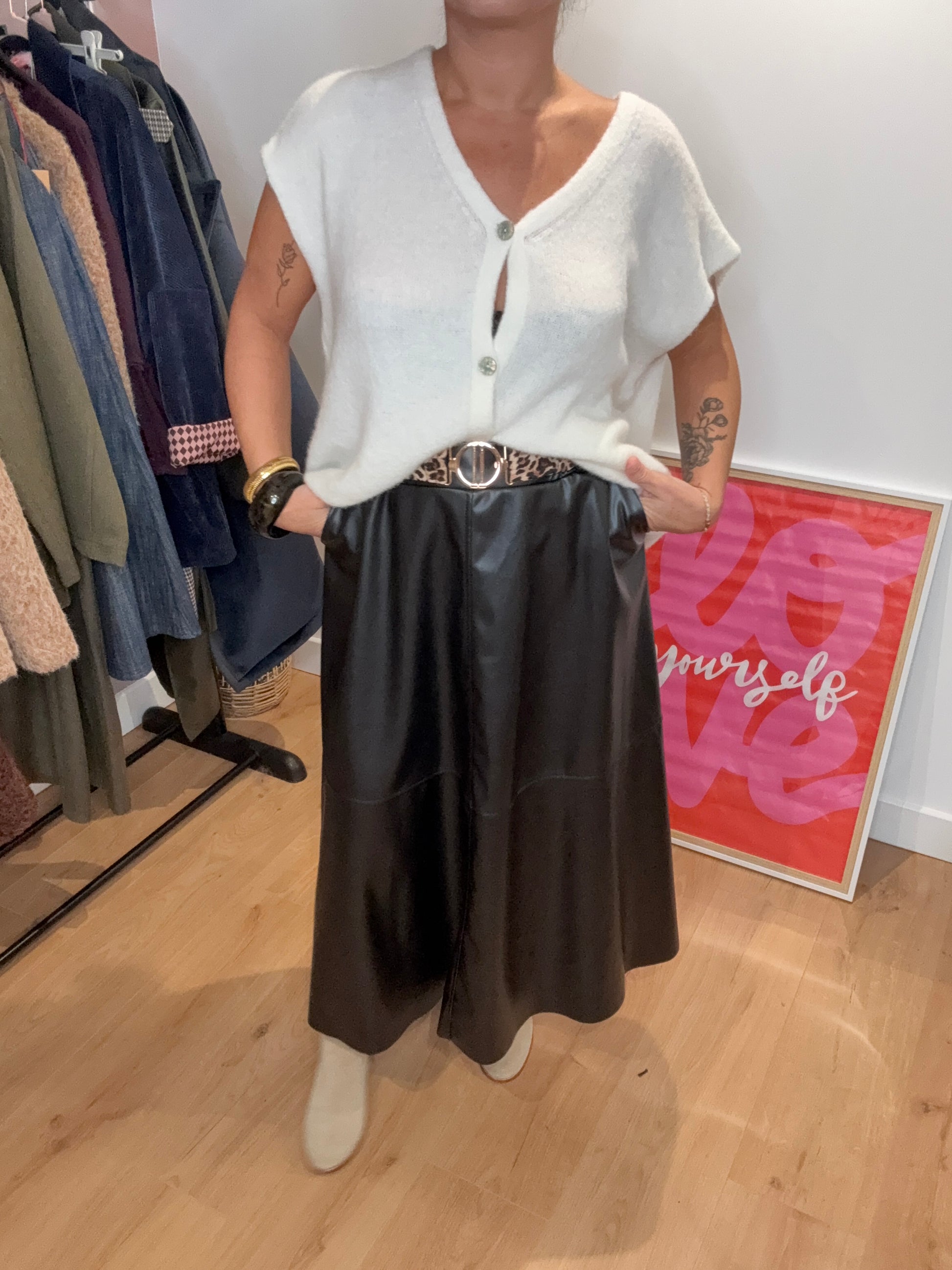 Affichez un look audacieux et ultra stylé avec cette jupe longue en similicuir noir, incontournable pour un style rock-chic affirmé. La ceinture léopard vient twister la sobriété du noir et créer un contraste ultra tendance, digne des street styles les plus pointus.