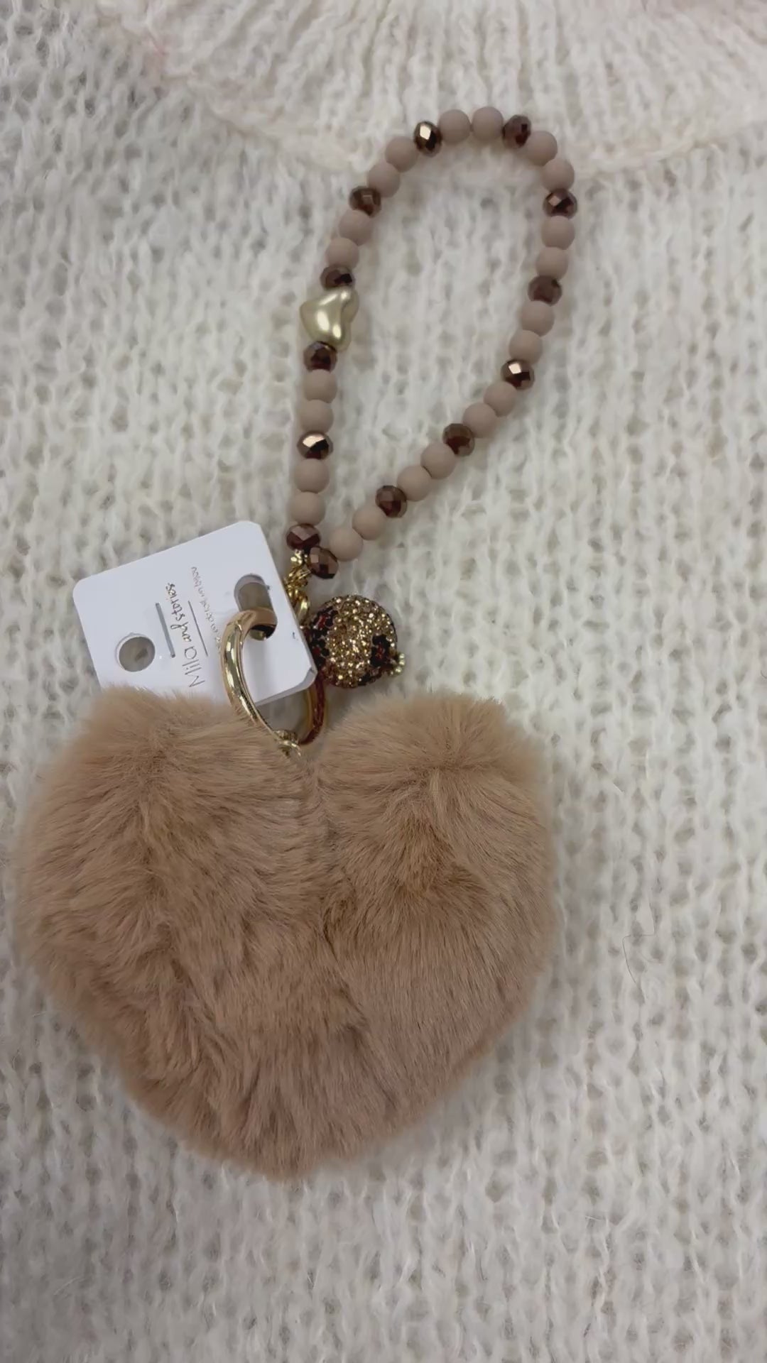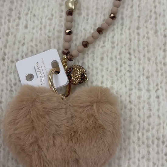 PORTE CLEFS FOURRURE COEUR BEIGE