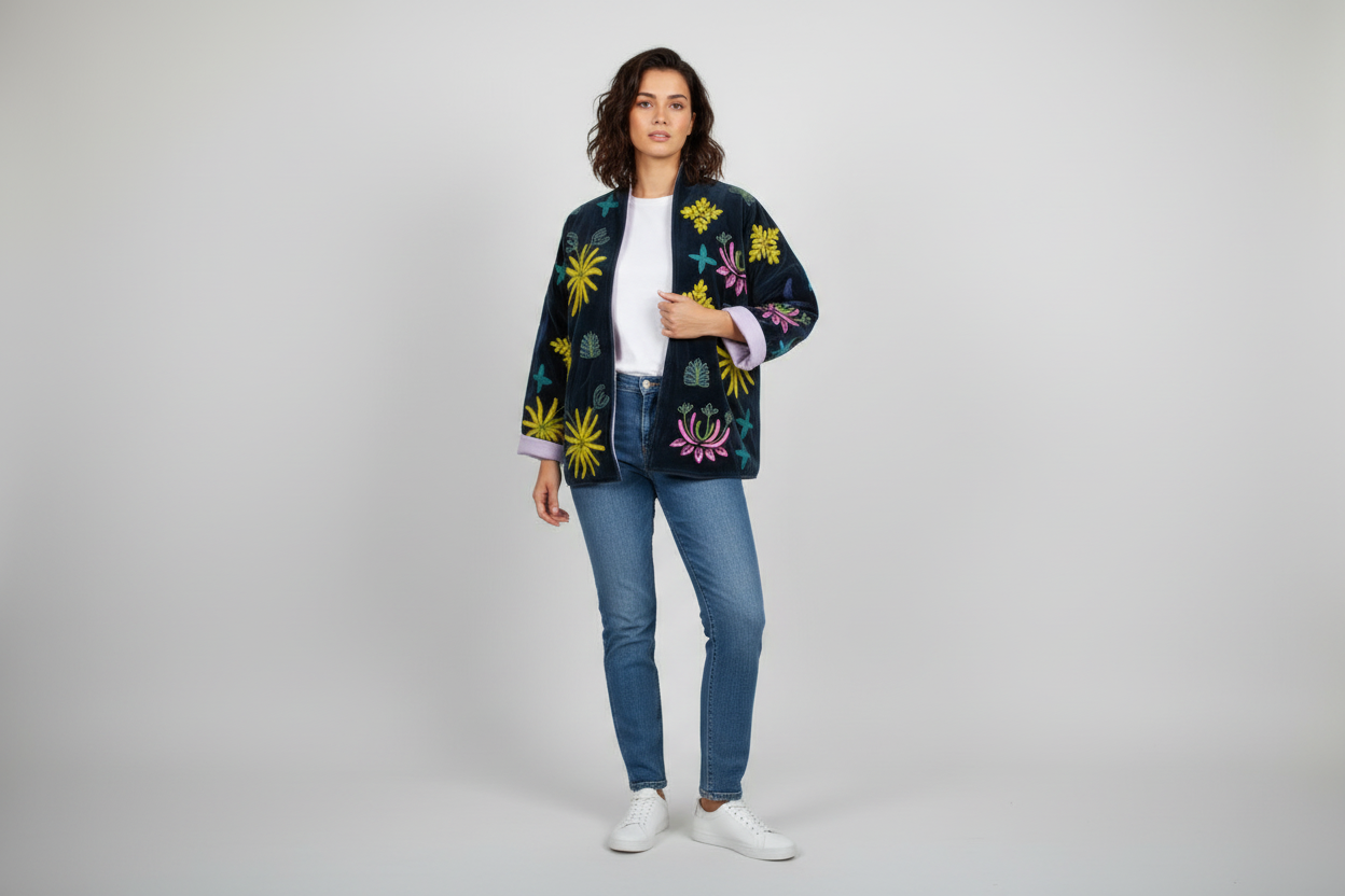 Cette veste matelassée brodée est un véritable coup de cœur mode : elle se porte facilement au quotidien sur un jean pour un look décontracté chic, ou par-dessus une robe pour un style élégant et raffiné.